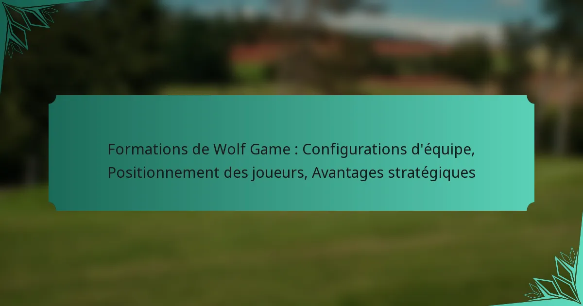 Différentes formations dans Wolf Game servent des objectifs uniques selon la phase de jeu. Les stratégies du début de jeu se concentrent sur la collecte de ressources, les transitions du milieu de jeu mettent l’accent sur l’adaptabilité, et les scénarios de fin de jeu priorisent le positionnement défensif et offensif. Comprendre ces formations peut considérablement améliorer la performance de l’équipe.
