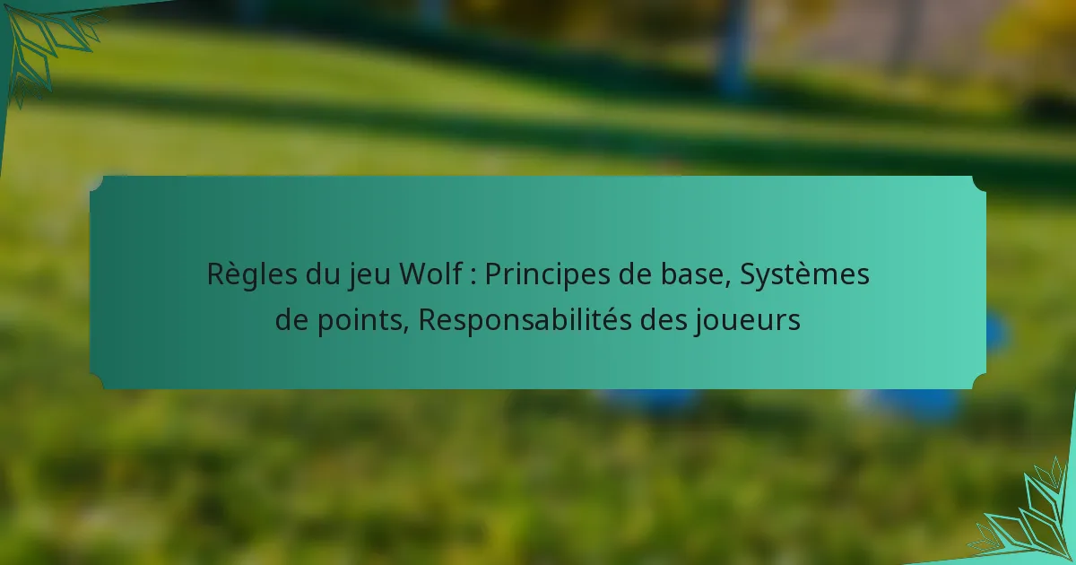 Quels sont les principes de base de Wolf Game ?